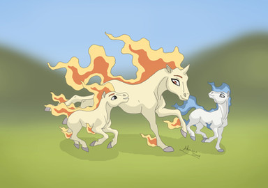 I adore the Ponyta's face and expression especially and the glowy effect is very soft and fitting. Really great job!