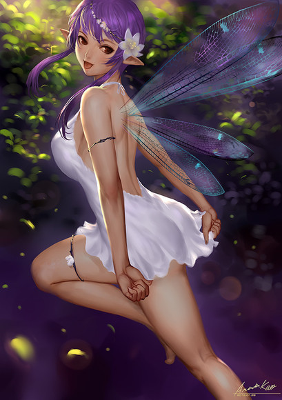 Very pretty girl with detailed, innocent looking wings and a not a bad hand gesture.