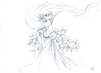 Young Pyronies, when she passed her time in the world of the living.The first thing that came to my head while drawing her was Rapunzel.