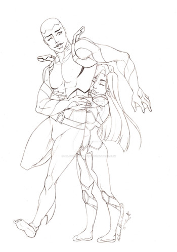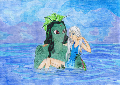 A little something has been write behind curtains.In a short story where Kaldur'ahm, a merman, looks the aid of Vanessa, the Sea Witch, to turn him human in order to be with Princess Marie (Pyronies) who he saved after her ship wreck. Pretty much like the Little Mermaid, but who gives a damn. I don't, I love the story.