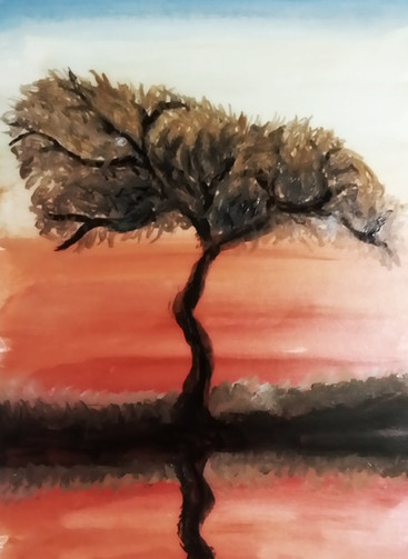 I enjoyed looking at this up closed. You did a wonderful job working with the depth of the water and the light in the tree's I can almost feel the leaves rustling in the breeze. If you decide to work on this a little more I would love to see you define the horizon. Right now I think it looks like I am looking out to the ocean and there is a few waves coming in to shore, but yet the water is calm by the tree. You could make those white stroke into clouds, if you worked on them a bit more instead of having an ocean in the background you could add a soft foggy embankment or shoreline in the distance. which would means the inlet would be calm in the fore ground. I must say it is a beautiful calm piece of work.