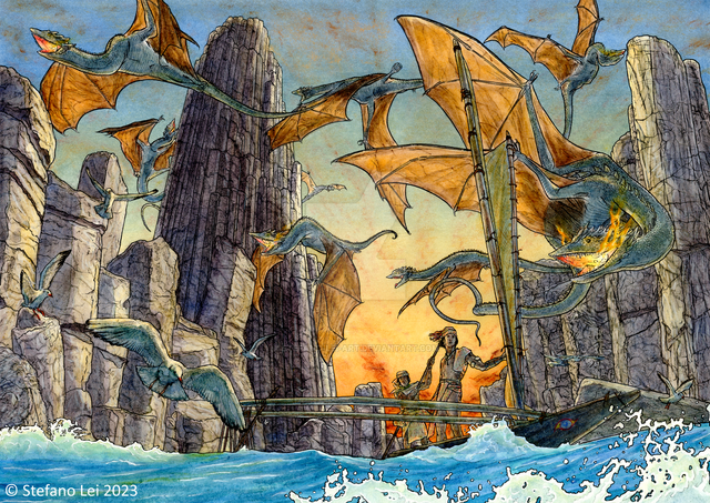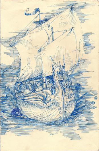 This is a color study I did for a piece I may or may not actually finish.A depiction of the DawnTreader from the Narnia book series.