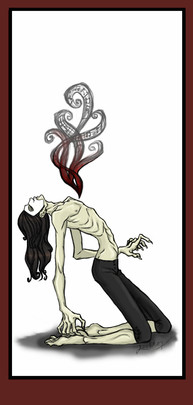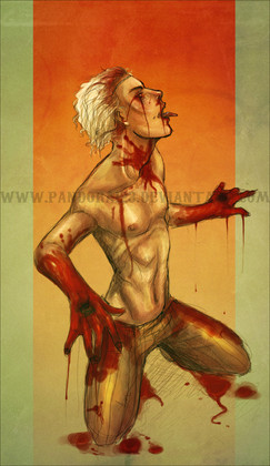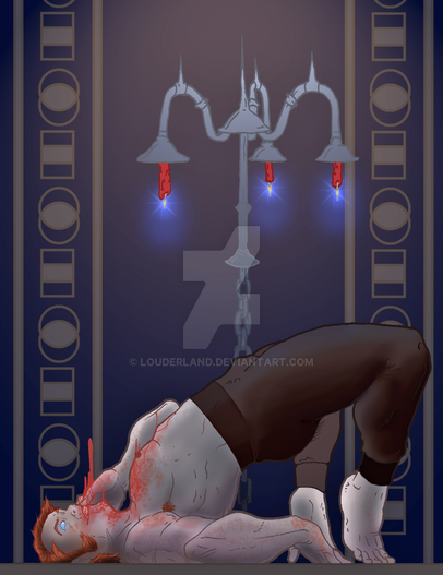 Indeed. I especially like how instead of having him positioned this way on the ceiling, you went with the more supernatural looking option to turn the entire picture upside down. And still let the blood on his hand drip upward. Brilliance.