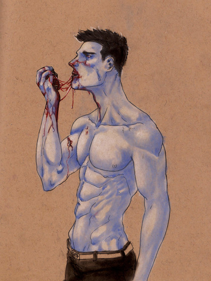 Este tio se sale... TΓ©cnicamente el ojo azul es un detalle muy bien pensado, destaca sobre la oscuridad del dibujo...