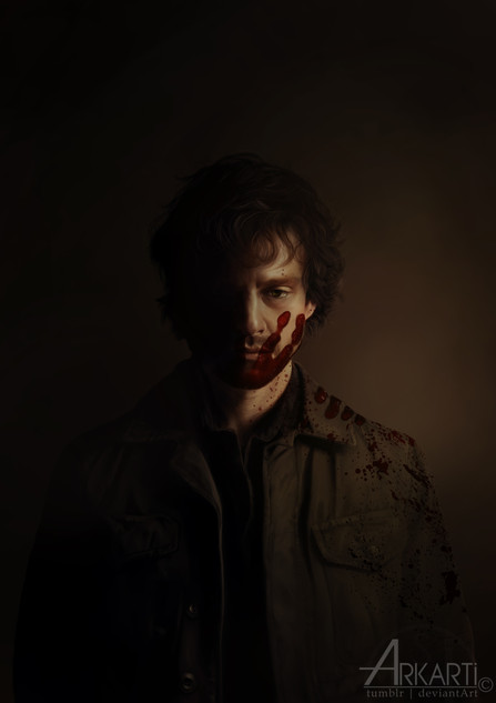 I love this! Very creepy, but the light in the background is very nice and I LOVE how you did the blood!