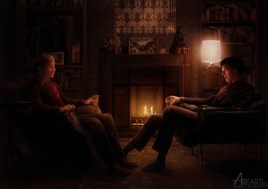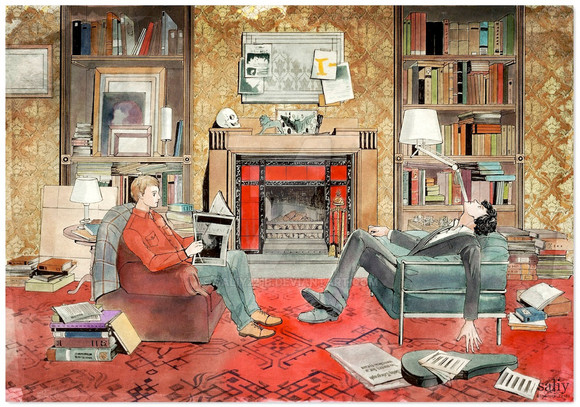 okay, first of all, this is such an amazing artwork!! I love the way you did the subtle glow for the lighting. I think that gives out the effect of what a 'normal day' in 221B is. The way you colour is very beautiful. It blends in perfectly but it's not blended too much that it gives out that feeling where it doesn't look right, it's just the right amount of everything. I'm so close to saying that this is perfect!! I keep on staring at it, you've done a fantastic job! I would love to see more of your artwork, they are downright amazing! Love it!