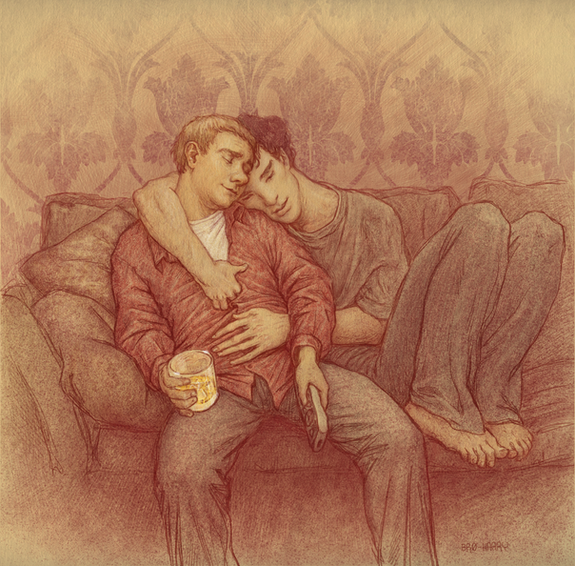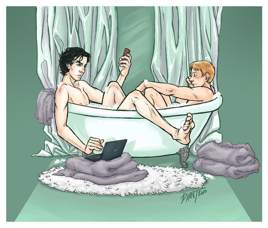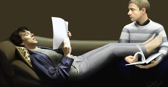 I love how the painting shows us John and Sherlock's domestic life in the flat. The shades and details are very well done. And their postures, it's so them. I can imagine what the situation (and conversation) would look like. It's so real I can't tell whether it's a photo or a painting. *sign* It's so amazing. *bows*
