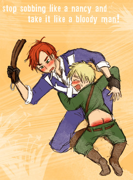 the spanker was either Spain or Germany. IF YOU TWO EVER TOUCH MY LITTLE ROMANO AGAIN I'L FUCKING GO FANGIRL ON YOU