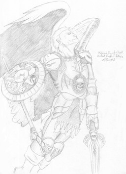 Another drawing sitting in the pile. This time a revamp of my Azrael for a Rifts RPG game on Palladium Chatboards.Fallen Cosmo-Knight in a Phase World epic game, though due to my schooling priorities, I had to leave the game.