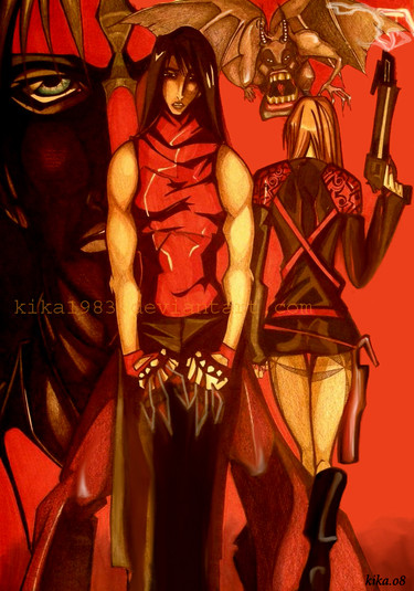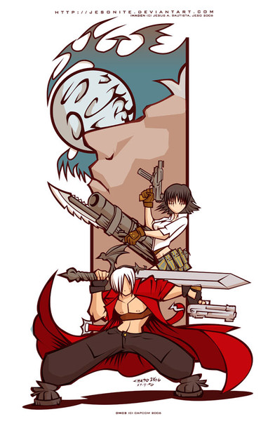 eh, i saw another version of this same picture so i'm not too fazed. i like it none the less, still has an original feel to it. but i do have one question... did trish shoot dante in the crotch?... or is he just wearing really, really tight pants?