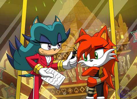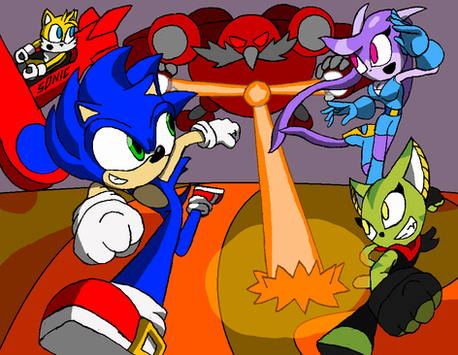 After hosting his Great Race with the help of Sonic and his friends to test out his new car designs, the President of Donpa Motors Dodon Pa himself decided to expand his roster of racers. Team Eclipse were among the lucky recruits and were gifted with new rides of their very own, courtesy of Donpa Motors. While the Treasure Hunters were more accustomed to Extreme Gear hover technology, Umbra couldn't say no to a racing challenge and his friends happily followed his lead. They agreed to a rotation system to keep to the Teams of Three rule, but in a Free-For-All race all four members put the pedal to the metal!