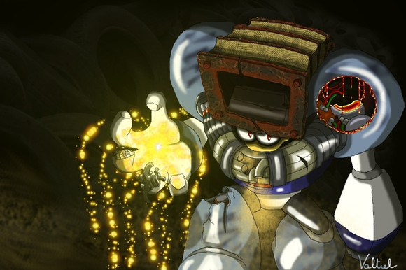 Actually thats Rej the Reject, my OC. He's a robot made out of parts from Eggman's junk pile and has a head from one of Emerl's duplicates the Phi robots.