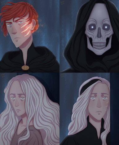 Happy New Year, everyone!! Sorry I was late in posting something; I've just been tired this holiday season, and I thing the rest and recharging helped a lot XDD But here we are with my first official painting of 2023!Last year, I read Isolate by L. E. Modesitt Jr, a gaslamp political fantasy about two security aides who protect a government councilor. This year (well, technically Christmas 2022 loll), I bought the sequel, Councilor -- and I’m enjoying it so much that I had to draw some fanart for it! XDD Here we have Councilor Obreduur in the middle (whom I imagine looks like Peter Cushing lmaoo), and his two security aides: the empath Avraal Ysella on the left, and Steffan Dekkard on the right. Steffan is an isolate, meaning he is invulnerable to empath attacks and senses.