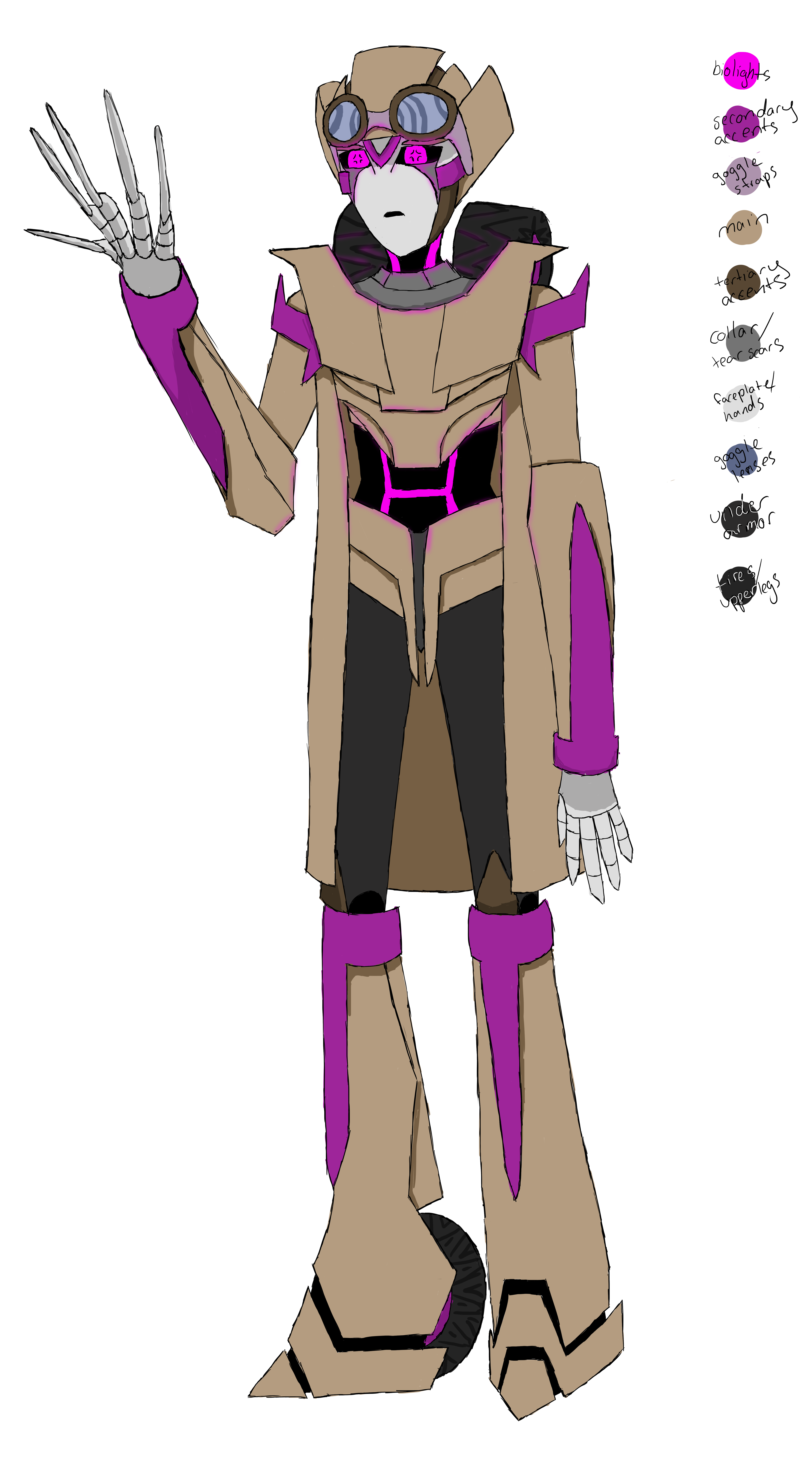 A strange mix of upbeat but jaded, and yet still naive in many ways. Is afraid of an assortment of things, which can be summed up to ‘a little bit of everything’. However she is particularly neurotic about things being balanced, commander class sized cybertronians and fliers. (Mardic, oddly enough, remains the only flier she has found any comfort around)