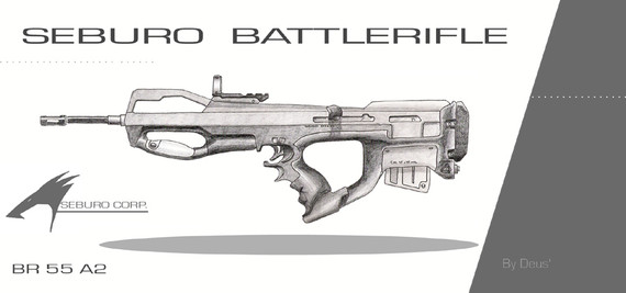 This is the finished cel shaded version of my batlle rifle. This is my first serious attempt at CGing anything in Photoshop, so keep that in mind.Related content