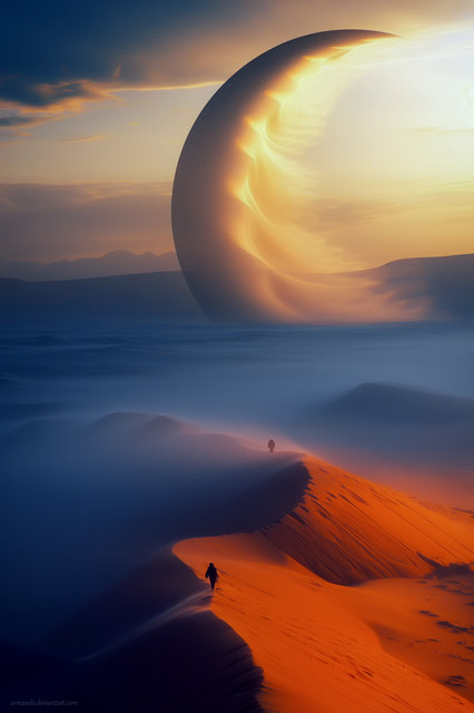 Okay, I admit that the way I put my opinion was a degree too harsh, and I apologize. Part of my point was that the sky and the land don't really go together. I present as counter-examples some of armands' own work. Check out his Planet CopperWine or At the Edge of Fresia. Both works present cohesive worlds that really feel like Places. I don't think this piece makes it to that level, though with different terrain textures it could.