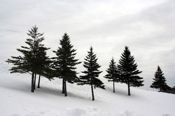The trees look (to me) over-saturated next to the gray scale of the mountians, it's an effect that sometimes I like and sometimes I don't, for some reason I'm not liking it here.