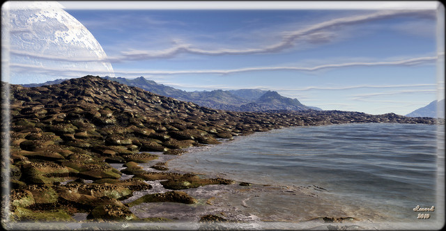 Created with Mojoworld 2.0 , postprocess with Photoshop. Original rendering aprox 5000 pix wide, available as Zazzle poster . More saturated&strange worlds at my TerraEscape galleryRelated content