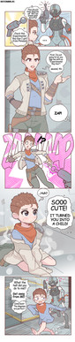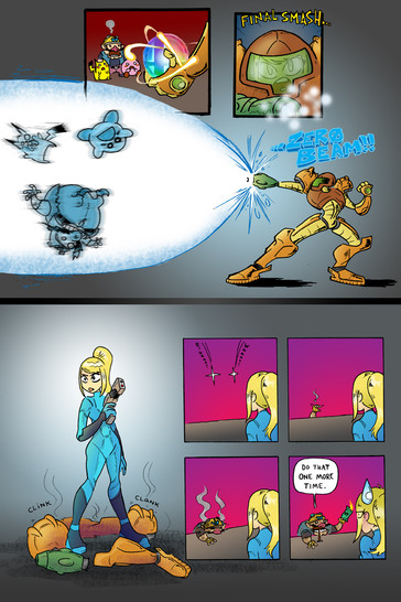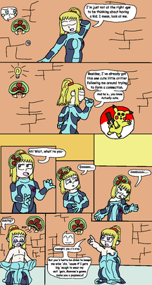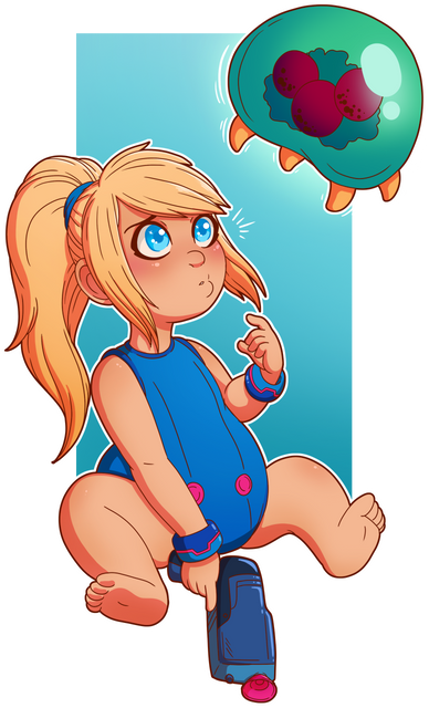 Awww, so cuuuuuute! I kinda wish this happened when you get a Game Over in-game; Samus's suit exploding to reveal an adorable little baby Sammy!