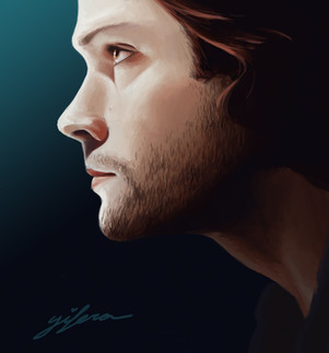This is simply gorgeous! (besides the fact that it's Sam and he is always gorgeous! XD) I love your digital painting style and how you use very fine brush strokes. And the angle at which he is facing makes this even more interesting.