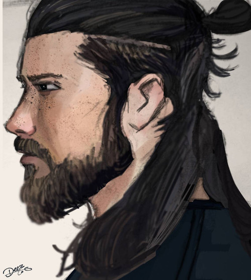 Oh YES! This is really great! I love the different style. This is a really interesting angle, different, I like it. And EVERYone loves the manbun XD