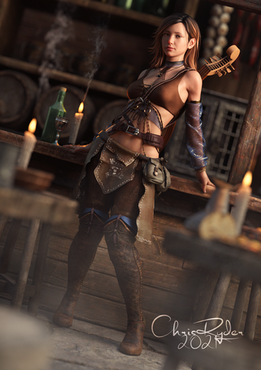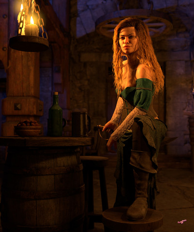 I've been thinking about doing a bard tavern scene for a while, maybe I was finally inspired watching the Jaskier character in Witcher?Created in DAZ Studio, postwork in Photoshop.
