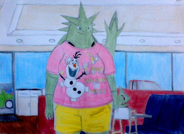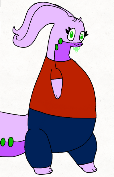 Allison is a nerd and when shes not lost in thought shes playing her 3DS and has the Y version of Digimon ( as opposed to pokemon Y), she likes watching TV like many teens do but she'll see the science documentaries and Mythbusters as well, shes a junior in high school and is majoring in science and history, school is still hard for her as she experiences bullying often, mostly namecalling and obscene rumors about her, Allison has'nt been beaten up in years because of her large size and enormous strength, she has no trouble defending herself physically, but still gets shunned in the lunchroom and gets excluded from alot of fun things as she behaves like a kid sometimes, but she has friends though in her neighborhood, as they have known her since they were very young, her best friend is a Braxien named Didi, who grew up 4 doors from Allison, they both get along well even though Didi gets kinda exhausted sometimes.