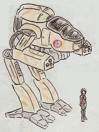 Bigger than a mobile power armor, smaller than a full size mech. it's a mini-armor pod.Armed with a high power gauss cannon, and a 4 pack of long distance ballistic missiles. A close range auto-cupola 20mm gun mounted on top.