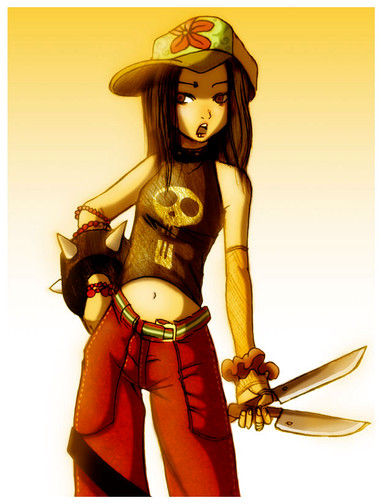 lindo trabajo me gusta mucho tu forma de pintado, me da la impresion de que sus manos y brazos se ven como raros, eso ^^