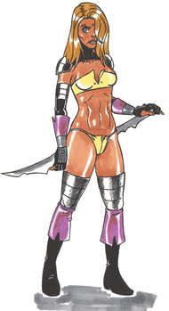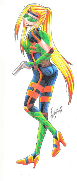 heres a futuristic Link where SHE has twin excalibers on both hands to fight evil doers....sorry folks i have never....... ok i have attempted to play zelda a couple of times but i didnt have the patience to keep playing in anycase i thought a female version would be cooler....