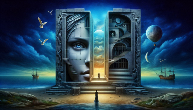 #portrait #beauty #surreal #magic #artwork #book #dreamlike #enlightenment #fantasy #floating #gateway #illustration #imaginative #knowledge #landscape #mystical #peaceful #portal #scenery #serene #setting #sky #starry #sunset #surreallandscape #symbols #utopian #wisdom #world #art