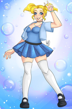 Decided to draw one of my fave cartoon characters of all time; Bubbles! Gotta love this little shy bundle of sunshine~As I'm don't really draw in PowerPuff Girls' style I decided to sorta redraw her giving her elements from the PPG anime as well~