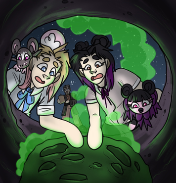 Long story short the twins stumbled upon the old Gigaloaf Labs. Alpha, hoping to find information went inside with the following of her nervous brother who could already feel that something was off with this place. Rusty metal, darkness, little stars, children drawings... You know the things that can be found in a normal laboratory. After much searching the twins found a working computer, which Alpha tried to hack with no success. And to top it all off it was turned on by no other than Iggy, who found out what the baddies were doing by a security camera. So yeah the Radish twins were surprised :'D