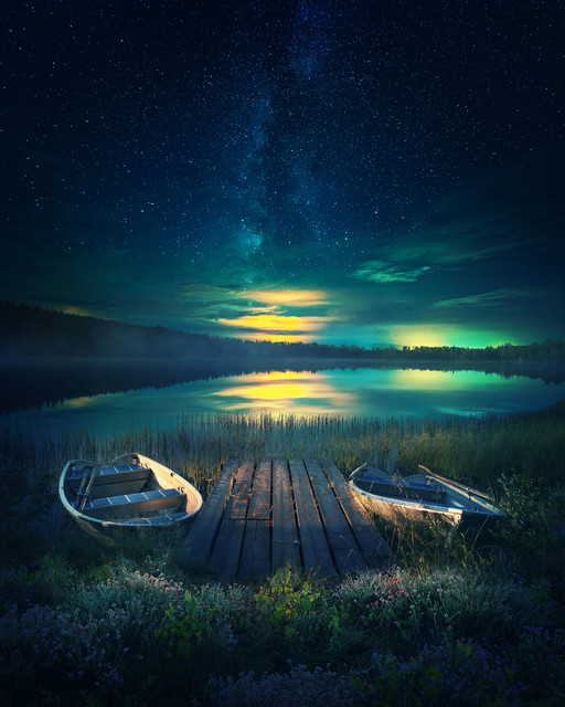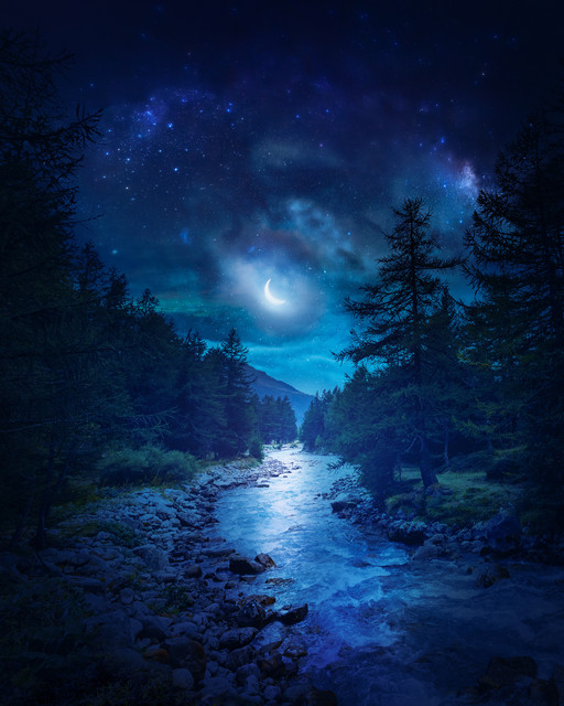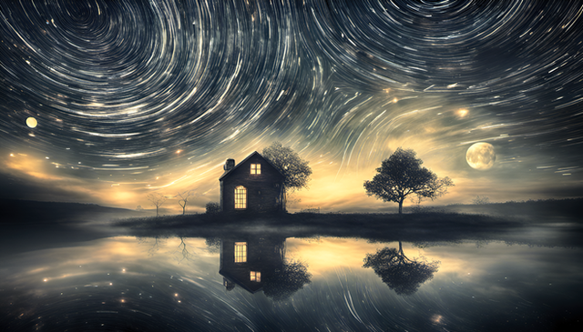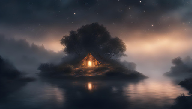 A house on the river welcomes the twilight, bathed in the golden hues of the setting sun. The stars appear, and the moon gently illuminates the night sky. "Stellar Dwelling" captures the essence of a tranquil dwelling, where nature's symphony harmonizes with the comforting presence of home.As we close the chapter on 2023, I want to express my deepest thanks for your incredible support. This final artwork is a reflection of the magic we've shared this year. Your encouragement has meant the world. Here's to more creativity and connection in the coming year!
