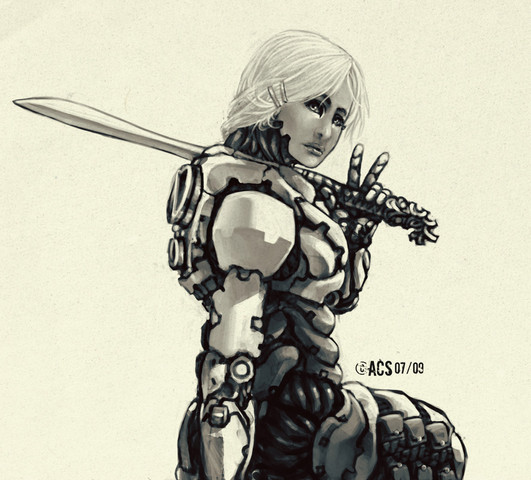the overall look and especially that sword reminds me of tsutomu nihei, nice work