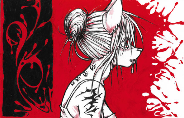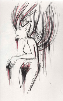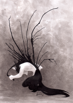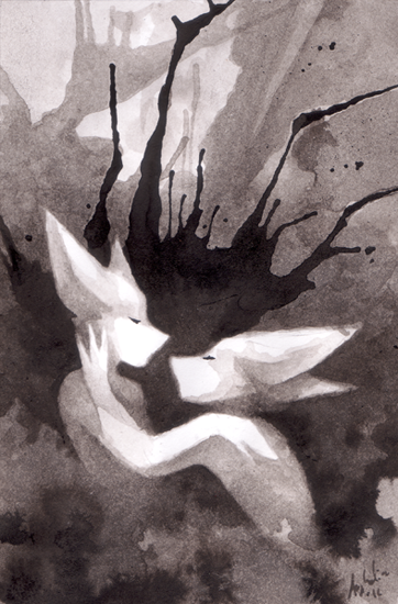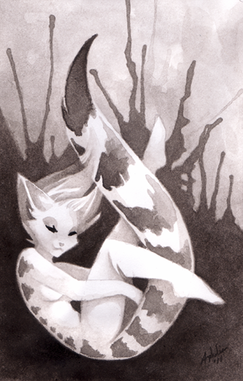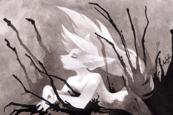 India ink on ink paper. This is kinda the image that got me back into brushed inks. It has been foreeeeever. x_x I really should start mentioning size.. This is smaller than your average birthday card.Art ©2011 Arphalia.
