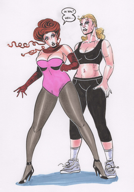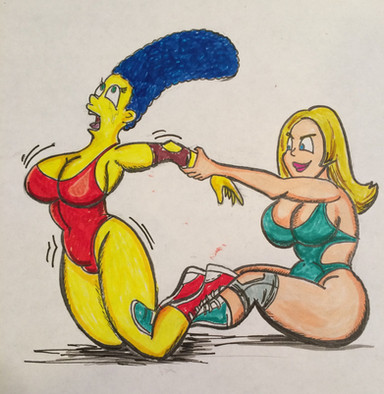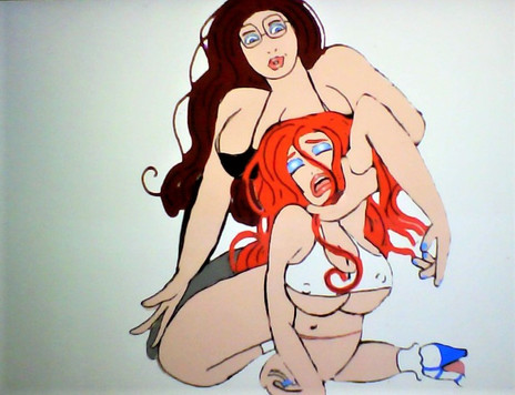 Love the contrast between the dominated, a young and proud superheroine, and the dominator, an elderly and non sexy female wrestler