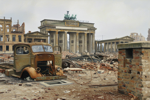 I would've had nature reclaiming everything and only the hardiest planted trees surviving, but that's just me. It's a really cool post apocalyptic painting, and I really like the abandoned cars. It's sort of what it would look like after, perhaps, a dirty bomb attack occured.