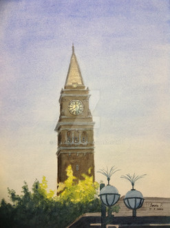 I took photographs of the building when I was on my lunchbreak eleven years ago. In the photo the hands on the clock face were in a different position, but it was still some time in the early afternoon. A lot of people tend to have their lunchbreaks arround midday. The first time I painted this building was for an art competition to do with Brisbane's architectural heritage.
