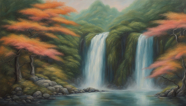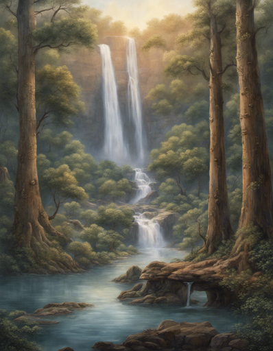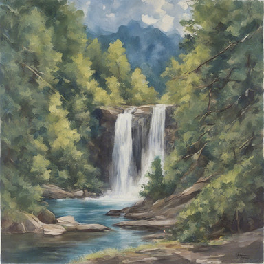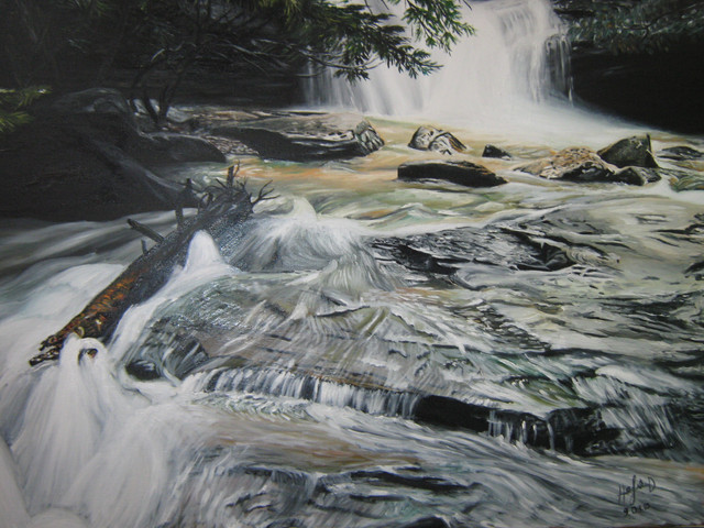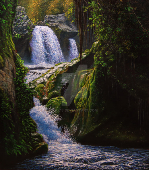 This is an imaginary waterfall in an imaginary rainforest. Acrylic on canvas.Related content