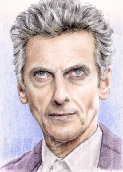I actually preferred him over the 10th Doctor. Great likeness, I especially like the highlights on the leather and the hair. Was the background done in a different medium than the subject?