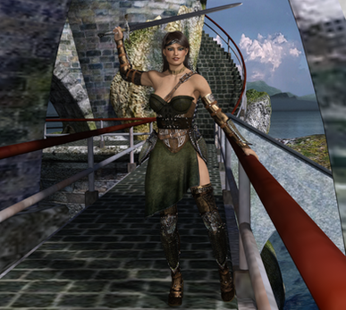 Not to sure I like the girl in the foreground's expression? Still getting to grips with Daz and what it can do.The idea behind the image is kinda a Red Sonja thing, one sister coming to the aid of the other