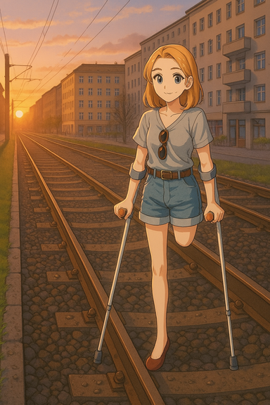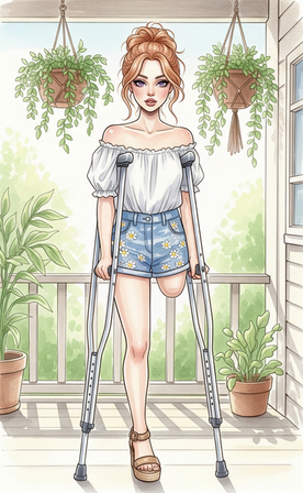 #artdigital #crutches #oneleg #onelegged #pretending #slippers #wedges #wheelchair #amputeegirl #artillustration #biid #prosthethics #artworkdigital #highheelsfetish #amputeewoman #oneleggedwoman