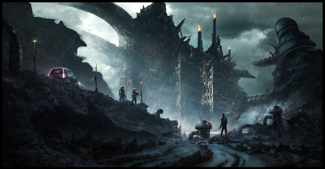 Wow, there are so many details in this piece, it's amazing! I like the contrast of the warm foreground with the greenish background. It creates a gloomy atmosphere.