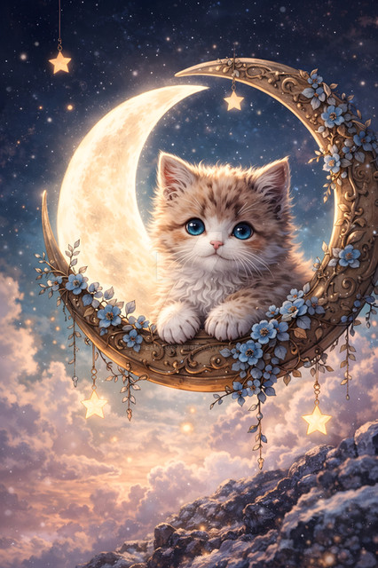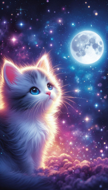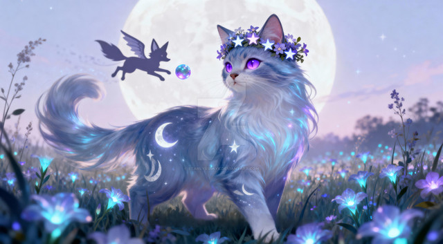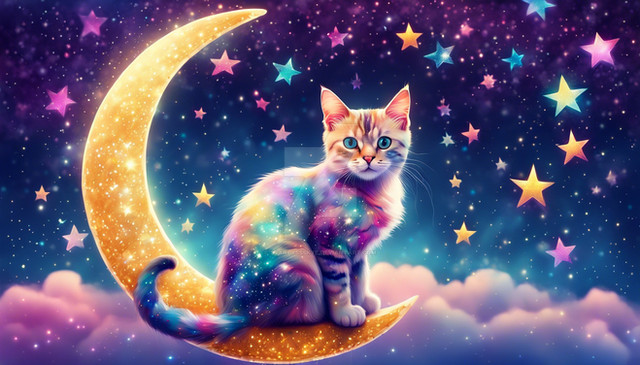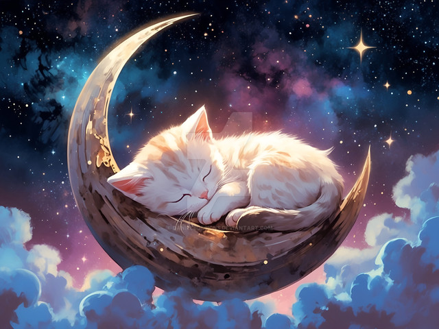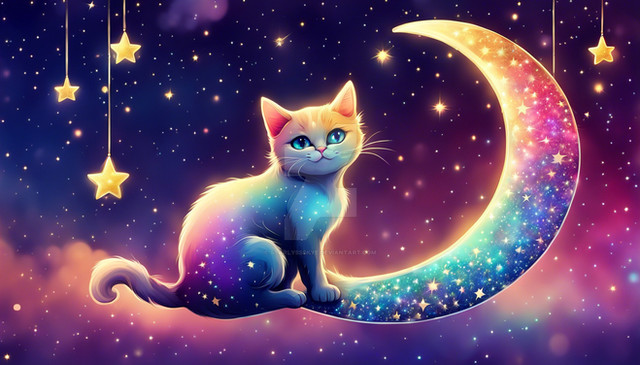 #anime #artwork #cat #celestial #cinematic #clouds #cosmic #digitalart #digitalpainting #dreamy #ethereal #fantasy #hdr #highdetail #illustration #magical #moon #night #peaceful #serene #softlight #stars #whimsical