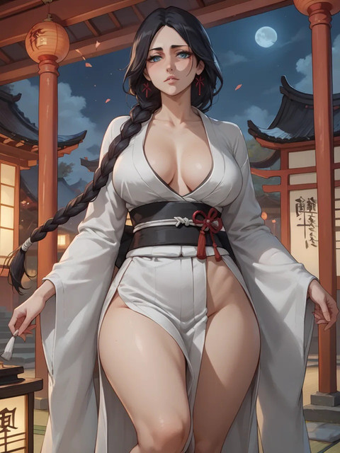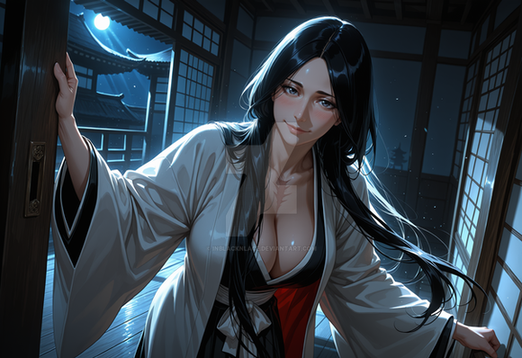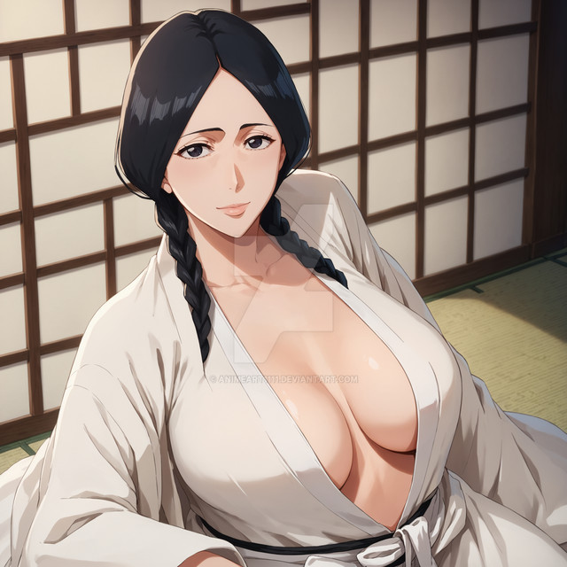 #animegirl #digitalart #anime #fanart #portrait #beauty #digitalpainting #bleach #kimono #braid #breasts #cleavage #indoors #lips #long_hair #shouji #solo #tatami #veins #1girl #unohanaretsu #black_hair #looking_at_viewer #japanese_clothes #huge_breasts #white_kimono #braided_ponytail #veiny_breasts #sliding_doors