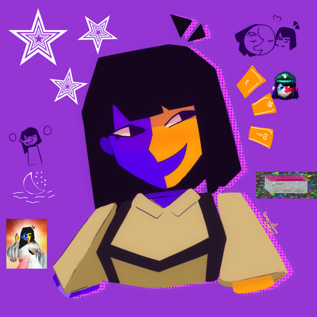 i think i drew this back in december as well. it took only like 2-3 days to make and honestly this is an artwork im pretty proud of. it's my first time doing glitches like that and i legit just did what i remembered from a old glitch tutorial i saved a while back. i drew this in sai 1 and i did the background and effects all in sai 2. it was one of my first times working with sai 2 and i really like it! it has a lot more things than the orig. sai and honestly it's a lot easier for me to adjust to than clip paint studio (even though we all know that clip paint is superior lol).