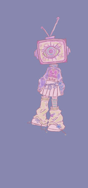 hi homiesthis will be the last old art i have to upload for yall. anything else will either be some dumb sketches or like, my commission sheet. uh, one of my friends commissioned me (requested me? idk i never got paid just got a new art program in return). they wanted me to do a drawing of like, a tv head character in like the color of blacks and purples. so yeah.