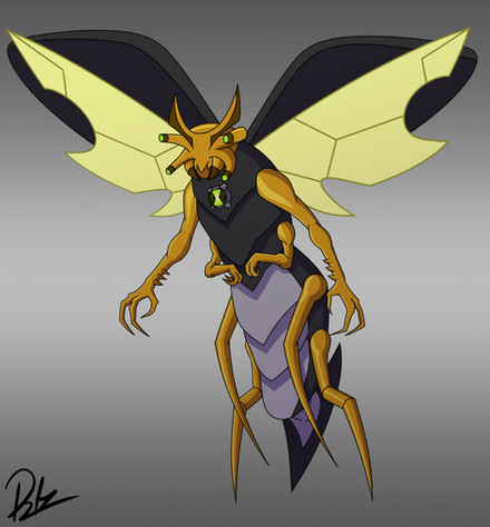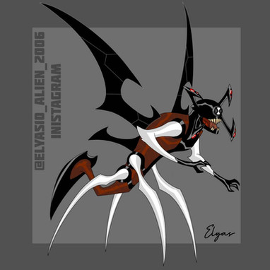 Note: despite having become less viable with the arrival of other aliens that fly better, Stinkfly is a very interesting alien, in this design I wanted to keep the essence of its classic version, putting some elements of its version of ben 10K as the bigger front paws, and leave the omniverse clothing pattern but with Adam's colors...