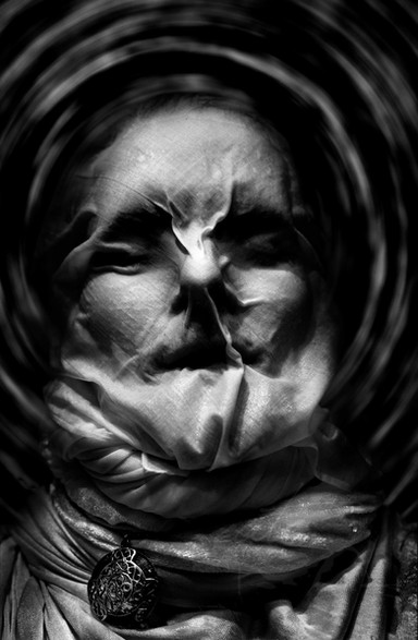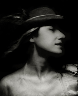 I really like this. The title is a perfect summary for this piece, with its dreamlike atmosphere. It's also interesting what you did with the needles because it adds an eerie aspect to it. As for the photo quality, it's a bit fuzzy but it fits in a way. The way that the rose is placed over the face brings about an aura of mystery, and I didn't notice it wasn't in the original photo until I read the description.